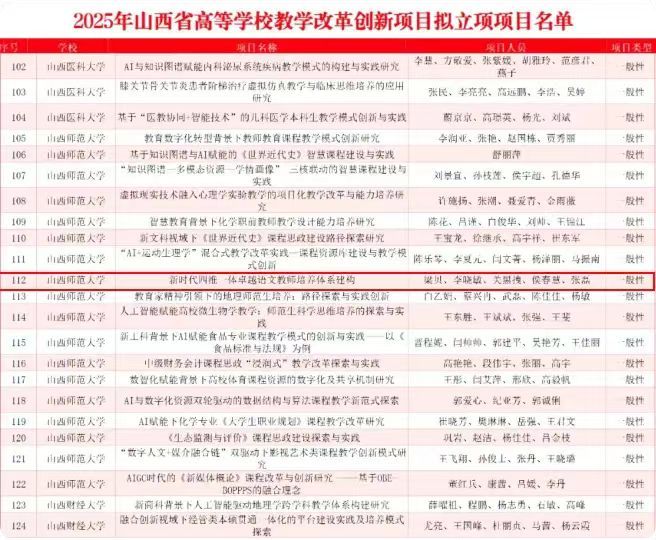 近日,山西省教育厅依据《山西省教育厅关于申报2025年山西省高等公司本科教学改革创新项目的通知》(晋教高函〔2025〕17号)...