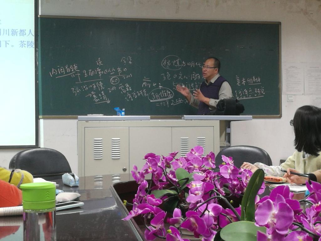 报告会上,白建忠老师从“二人的生平与时代”、“二人的诗学比较”、“杨慎评点《空同诗选》”等方面,对二者做了详细地阐述与对比。白建忠老师以此为例,指出文学、历史与哲学关系密切,要将三者相结合进行研究;任何一个流派和作家之间都有交错性与复杂性;每一个作家都有其文学的复杂性。