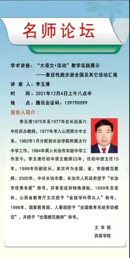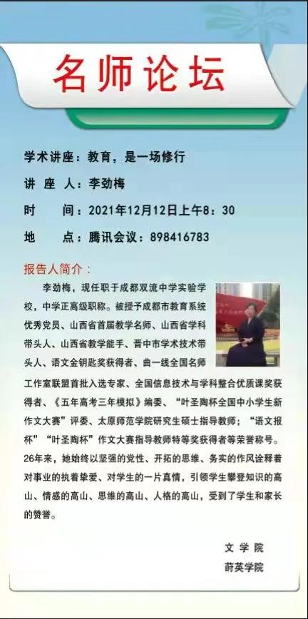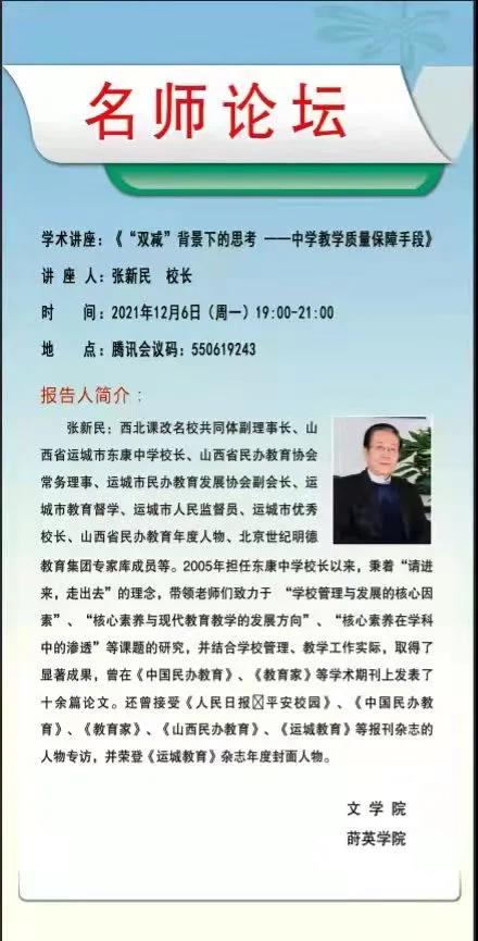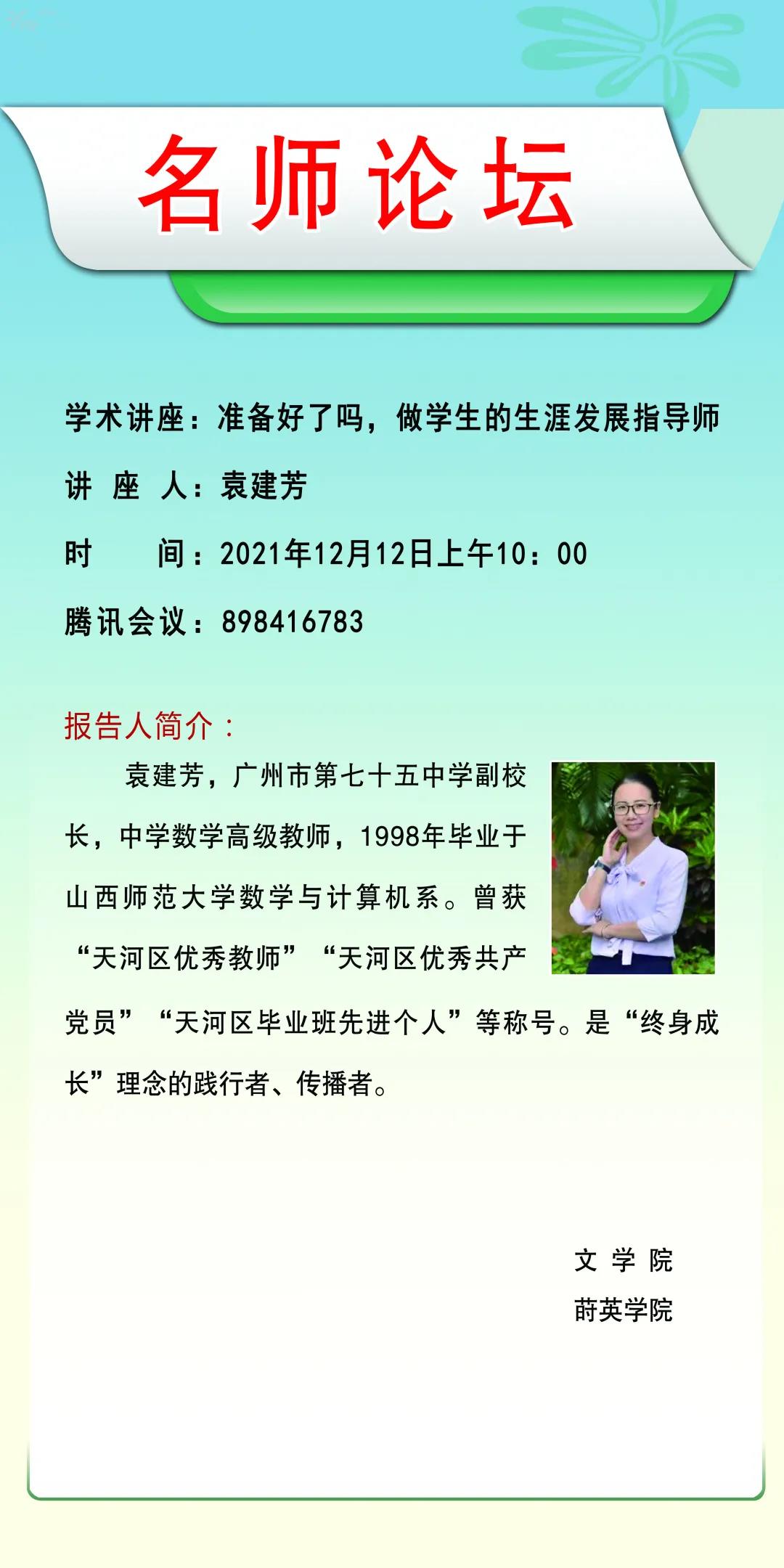 11月29日至12月12日,DB旗舰举办“名师论坛”系列讲座,邀请全国各地知名教育专家为公司卓越师范生、免费师范生等就未来名师应具备的素养、班级管理、德育等方面的问题进行了深度讲解。由于疫情影响,此次系列讲座主要以腾讯会议的形式举办。