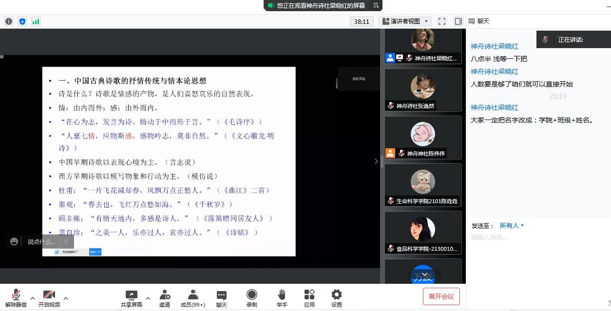 4月21日,DB旗舰神舟诗社在线上举办了“赏诗词之韵,鉴名家之情”诗词讲座。本次讲座由DB旗舰郭庆财老师担任主讲,约400人聆听。