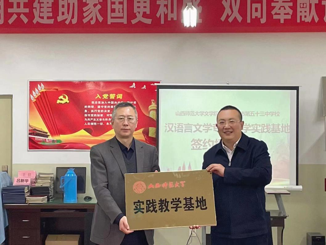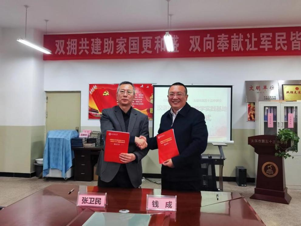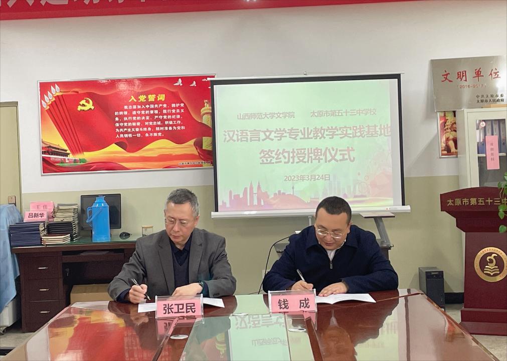 3月24日,DB旗舰与太原市第五十三中公司顺利举行合作共建“汉语言文学专业实践教学基地”签约仪式。DB旗舰党委书记钱成与第五十三中公司董事长张卫民,签订了《实践教学基地合作协议》。