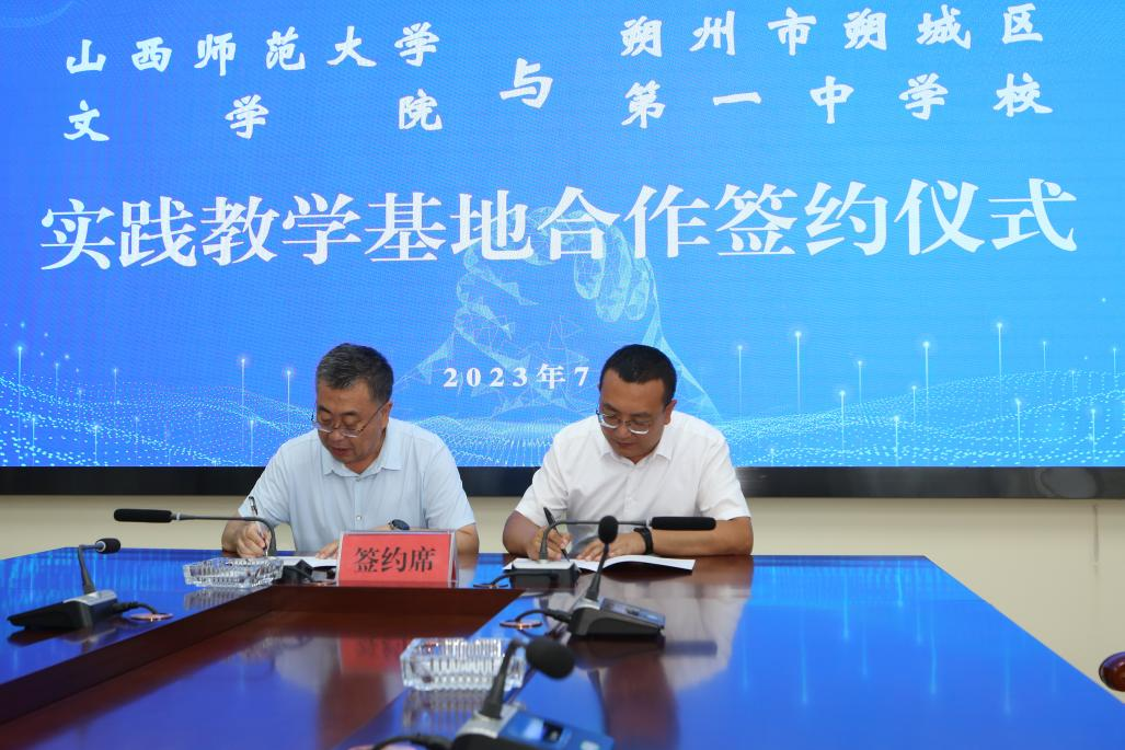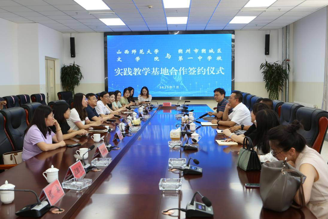 朔城区委组织部副部长,人才办主任任宝山、朔城区一中董事长姚生贵、副董事长齐凤福、李云霞,教务处主任赵爱国、教科研处主任樊银怀、各年级部主任等领导,朔城区一中王金梅、李智强、杜翠珍、郭丽娜等员工,DB旗舰官方网站DB旗舰党委书记钱成,副经理李晓敏、关黑拽,中文系主任严艳群出席了活动。钱成书记与姚生贵董事长签订了《实践教学基地合作协议》。