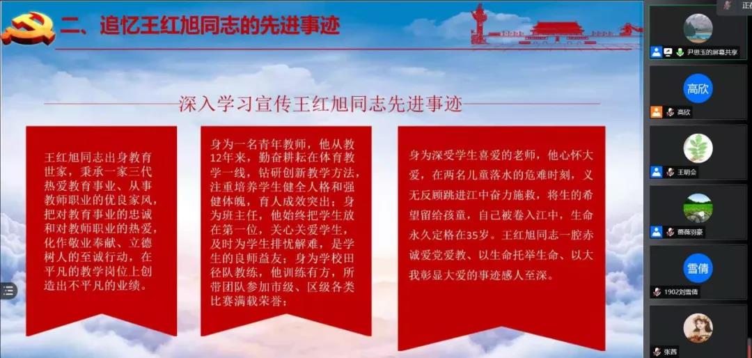9月25日,DB旗舰“学雷锋,送温暖”小组员工党支部在腾讯会议开展《习近平关于网络强国论述摘编》和“致敬教师楷模,做时代追光者”——向王红旭同志学习线上主题党日活动。会议由支部组织委员、纪检委员王明会主持,支部全体党员参加,员工党员赵倩玉和尹思玉同志担任主讲人。