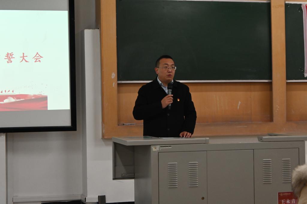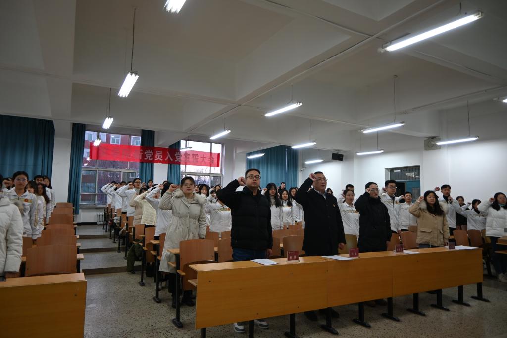 新党员入党宣誓仪式是党员政治生命的开始。组织上入党一生一次,思想上入党一生一世。钱成对新党员表示热烈祝贺,并向全体同志提出了四点要求:一要端正入党动机,加强党性修养。要牢记全心全意为人民服务宗旨,团结同志,关心同学,热爱祖国,奋力拼搏。二要加强理论学习,将“党史”“四史”学习教育落到实处,深刻领会贯彻党的方针政策,深入学习贯彻习近平新时代中国特色社会主义思想。三要坚定“四个自信”,坚决做到“两个维护”,对党忠诚、为党分忧、为党担责、为党尽责。四要强化规矩意识,严守党的纪律。以“四讲四有”的标准严格要求自己,做到平常时候看得出来、关键时刻站得出来、危急关头豁得出来,充分发挥党员的先锋模范作用。