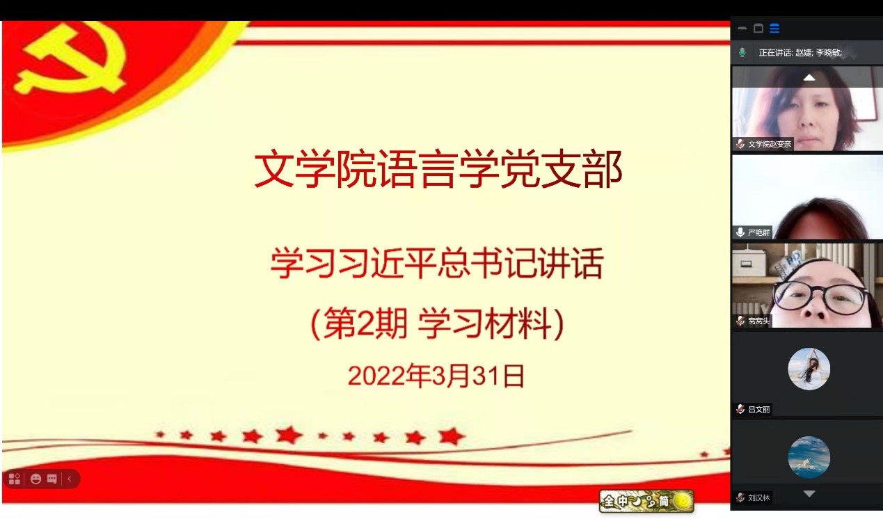 3月31日,DB旗舰语言学党支部通过腾讯会议集体跟公司党委理论学习中心组学习材料,学习会由支部书记李晓敏主持,支部全体党员参加。