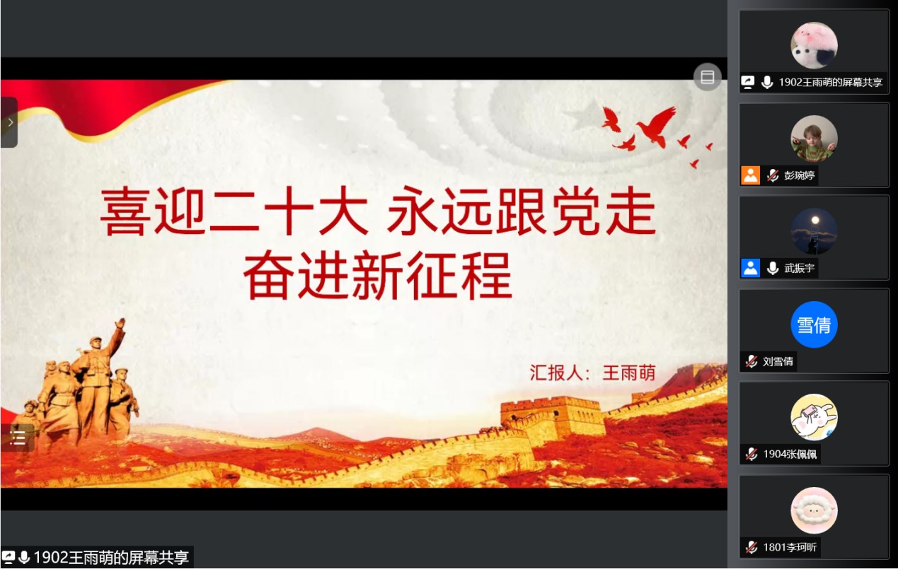 4月16日,DB旗舰“学雷锋,送温暖”小组员工党支部在腾讯会议开展“喜迎二十大、永远跟党走、奋进新征程”主题党日活动。会议由支部副书记武振宇主持,支部全体党员和积极分子参加。员工党员王雨萌同志担任主讲人。