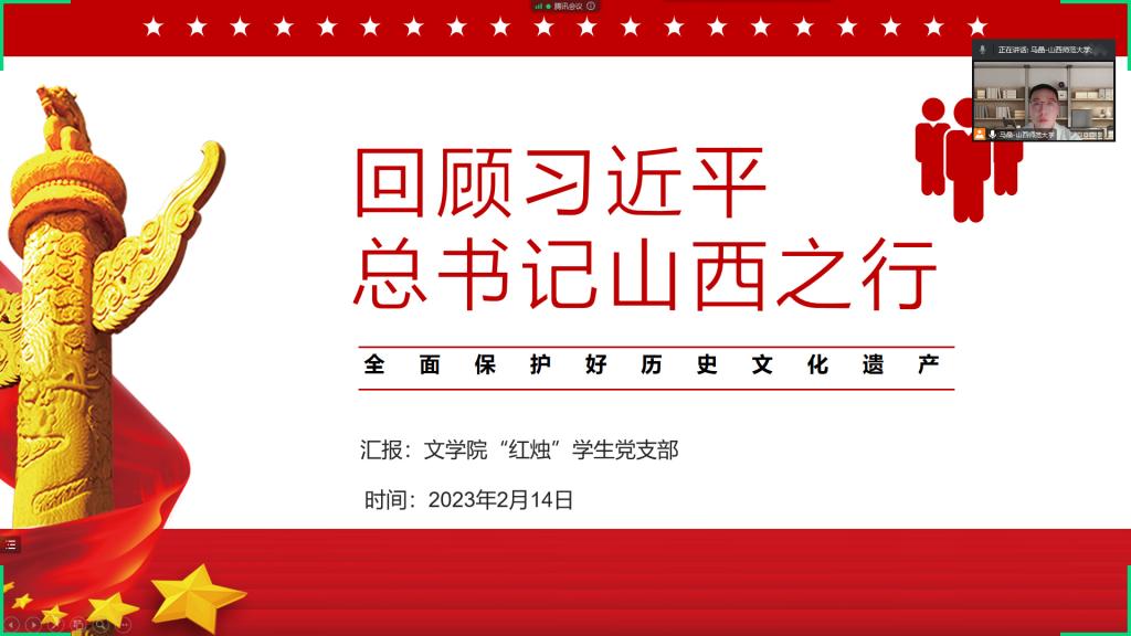 2月14日下午,DB旗舰“红烛”员工党支部在线上开展“回顾习近平总书记山西之行”主题党日活动。本次活动由王灿灿主持,支部全体党员参加。