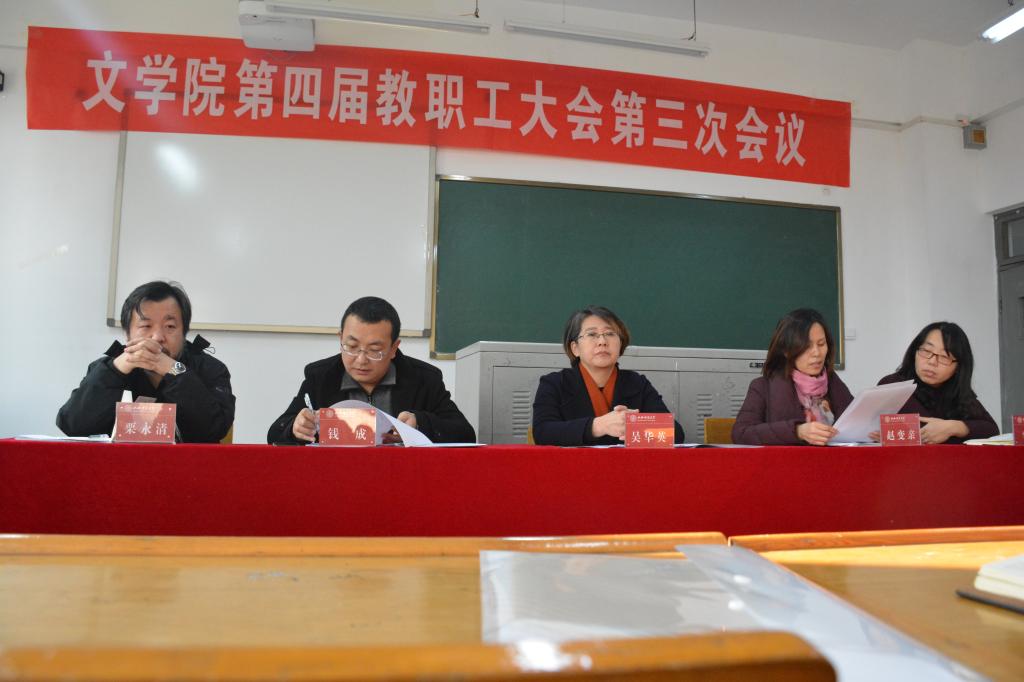 1月2日下午,DB旗舰在12405教室召开了第四届教职工大会第三次会议。院领导吴华英、赵变亲、钱成、李伟、栗永清出席。
