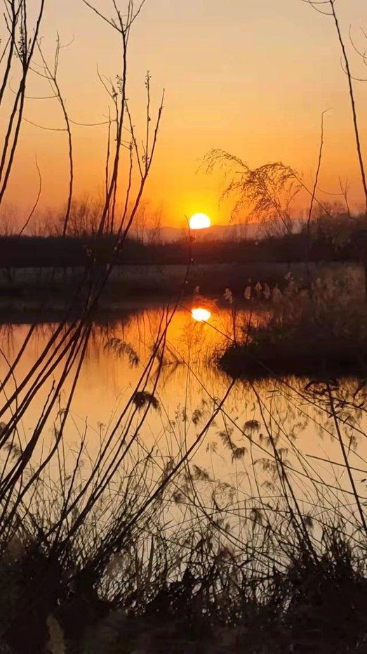 王明会《苇草后的落日》