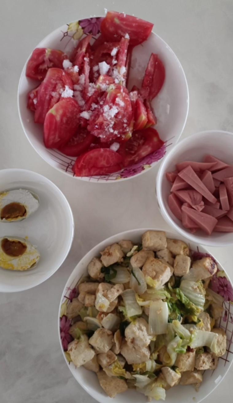 白菜豆腐、柿子拌白糖