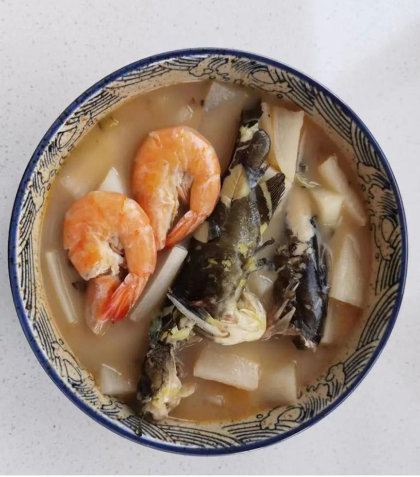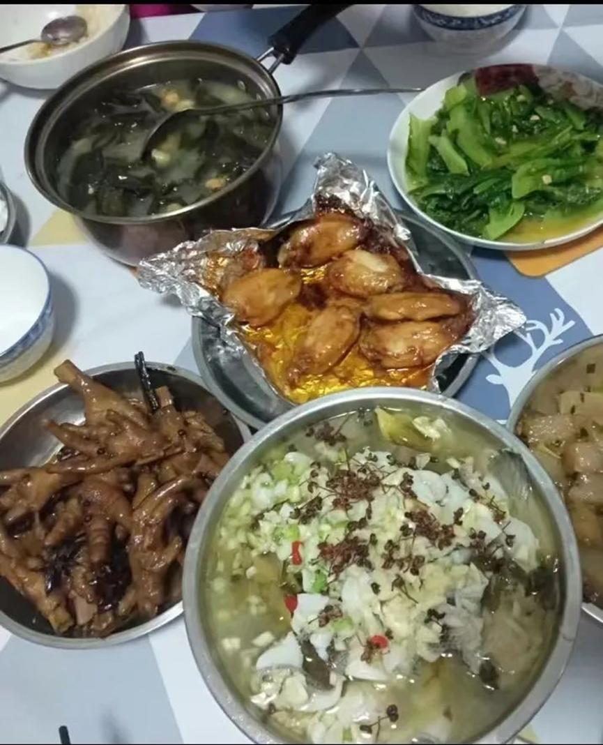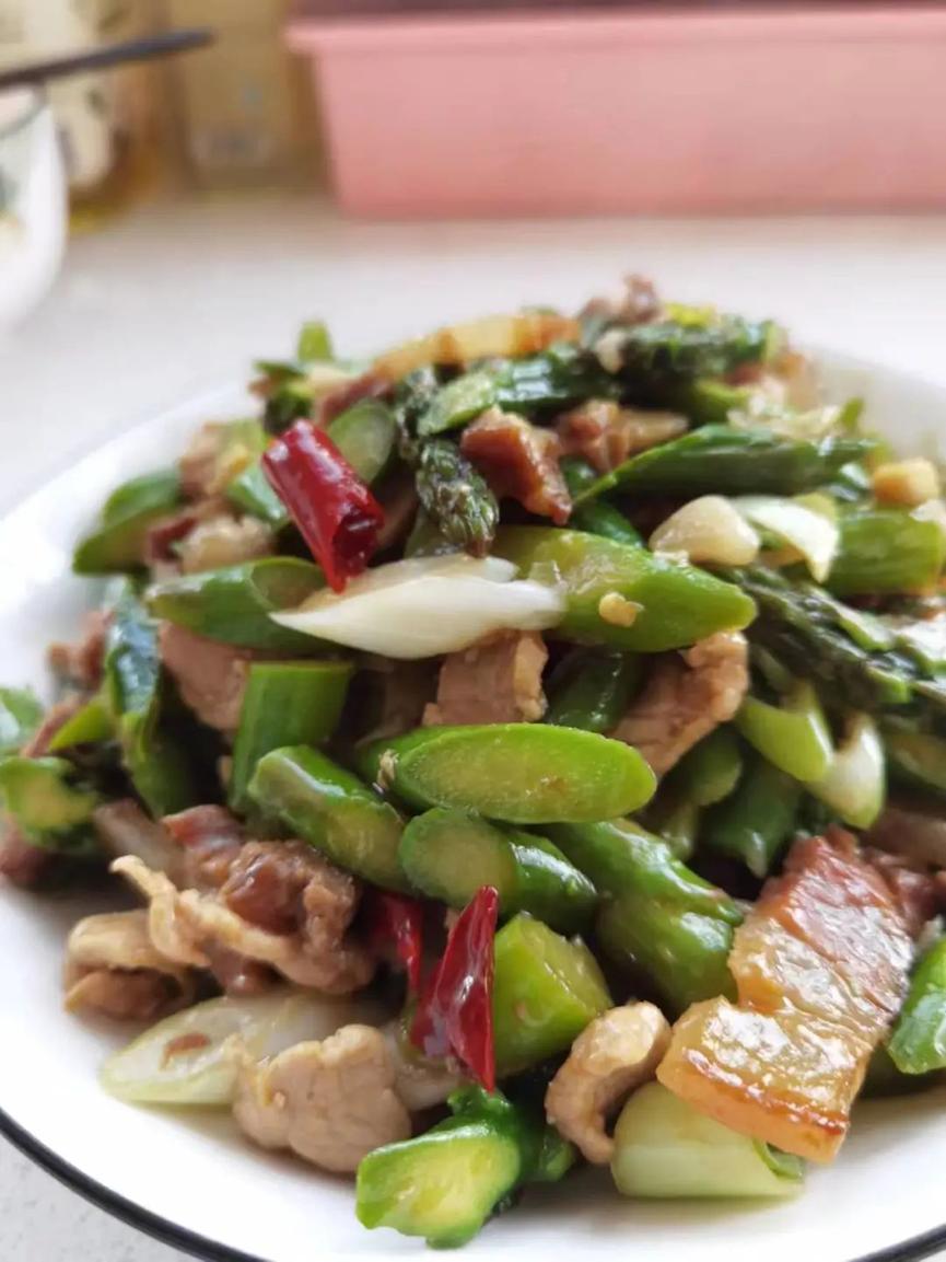 芦笋腊肉、黄骨鱼萝卜汤、红烧肉