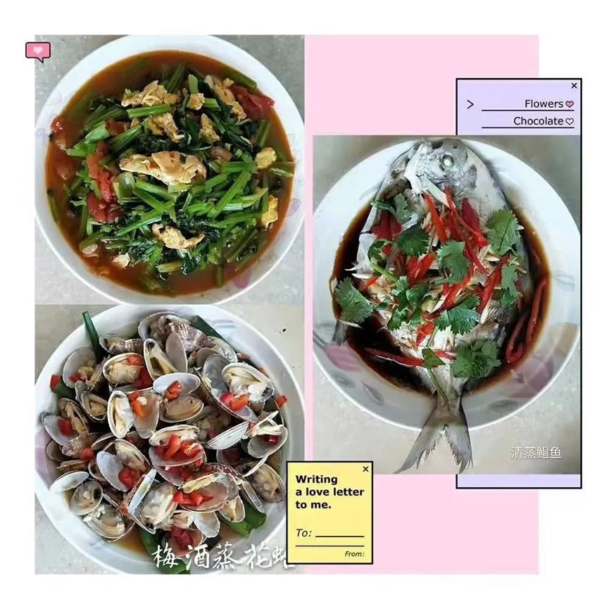梅酒蒸花蛤、清蒸鲳鱼