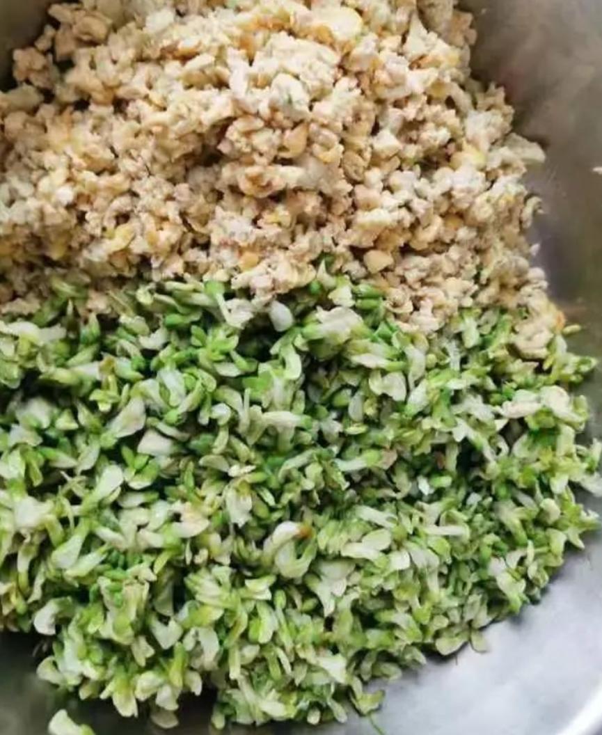 茴香猪肉大葱包、槐花鸡蛋虾仁包
