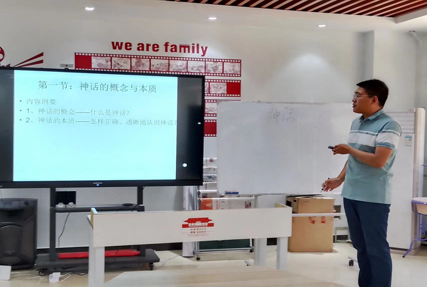 吕树明以“神话”为题,从神话的概念、本质及文化价值三个角度展开讲述,指出中国航天让神话从梦想变成现实,启发员工不仅要脚踏实地,更要仰望星空。