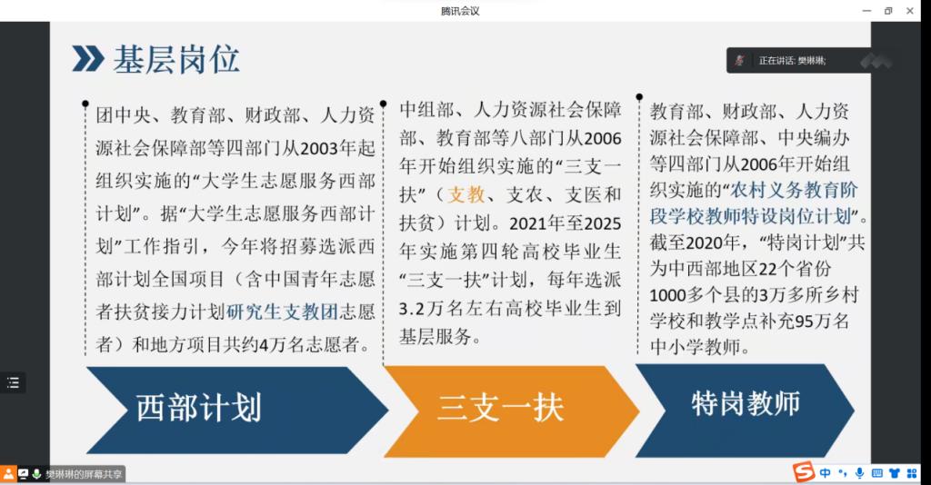 3月9日下午,DB旗舰于线上举办就业方向分析讲座。讲座由院团委书记樊琳琳主讲,约170名同学参与。