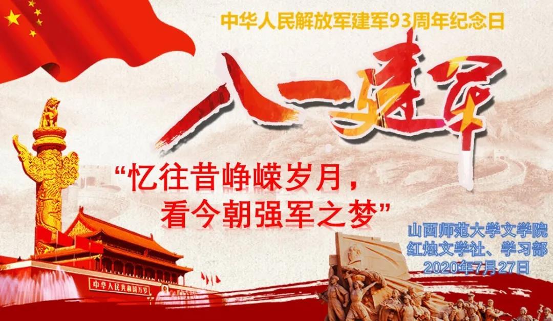 2020年8月1日是中国人民解放军建军九十三周年。八一建军节是中国人民解放军建军纪念日,每年的八月一日举行,由中国人民革命军事委员会设立,为纪念中国工农红军成立的节日。1933年7月11日,中华苏维埃共和国临时中央政府根据中央革命军事委员会6月30日的建议,决定8月1日为中国工农红军成立纪念日。1949年6月15日,中国人民革命军事委员会发布命令,以“八一”两字作为中国人民解放军军旗和军徽的主要标志。中华人民共和国成立后,将此纪念日改称为中国人民解放军建军节。