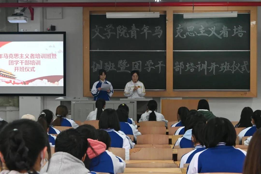 仪式在庄严的国歌声中拉开序幕,王永青宣读了“青年马克思主义培养工程”培训纪律要求,强调作为学员应自觉遵守培训班的各项规章制度,端正学习态度,积极参加培训班组织的学习活动。主持人李丹对青马工程进行了简单介绍,全体学员共同观看《奇迹董事长张桂梅》视频,深刻感受了张桂梅同志不倒精神、忘我精神、自信精神。青马学员代表任艺伟在发言中号召,作为21世纪的青年,要接过历史的接力棒继续砥砺前行,要对历史满怀敬意,对未来充满信心。大家在庄严的团歌中迎团旗,坚定初心使命。