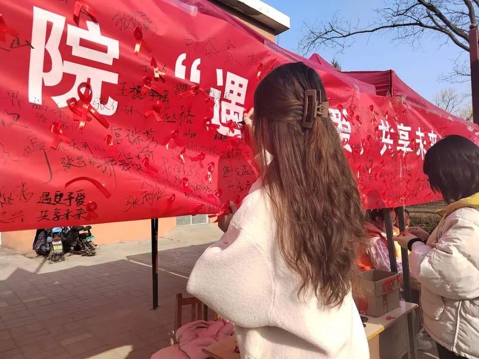 防艾宣传活动在志愿者的组织下有序地进行。在活动中,志愿者们分发了防艾倡议书,并带领参与活动的同学们填写调查问卷、自制红丝带和在防艾横幅上签名。红丝带是艾滋病防治的象征,它们飘扬在校园里,表达着同学们珍爱生命,远离艾滋的决心。