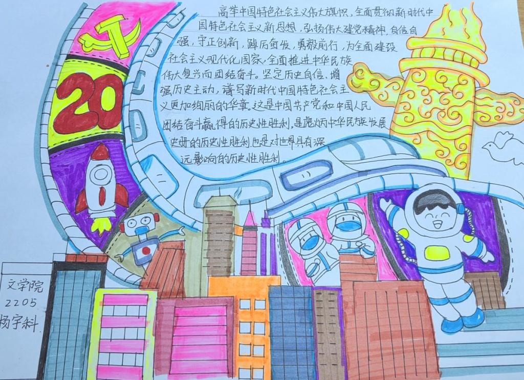 党的二十大高举中国特色社会主义伟大旗帜,全面贯彻习近平新时代中国特色社会主义思想,系统阐述新时代坚持和发展中国特色社会主义的重大理论和实践问题,对新时代新征程全面建设社会主义现代化国家、全面推进中华民族伟大复兴的一系列重大决策作出整体部署,具有特殊的历史地位和深远的历史意义。深入学习二十大的精神,深感吾辈青年的使命与责任,唯知青春向党、奋勇拼搏;唯知坚定信念、砥砺前行。