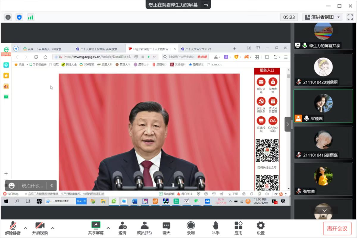 12月10日,2104班于线上开展党的二十大专题学习会。本次会议由辅导员谭生力主持,2104班全体同学参加。