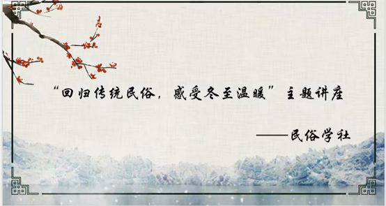 12月22日,DB旗舰民俗学社特开展此次“回归传统民俗,感受冬至温暖”主题讲座。讲座参与同学多达315人。