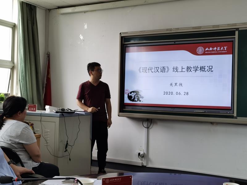 随后,薛月兵、高超、高忠严和严艳群老师分别以自己所带课程为例,介绍了任务型、线上线下混合型、实践型和问题型课堂的设计理念、实施过程及相关经验,关黑拽和鲁立智老师分享了本学期线上教学、成绩评定的设计、过程和经验。这6位老师的分享,涵盖了课程设计理念、课程平台建设、课堂实施及环节、平时成绩评定、考试、员工学习管理、教学情怀各个方面,同时也对线上课堂存在的问题,如:如何深刻激发员工学习兴趣、员工学习状态、学习可持续性和思考积极性等问题发表了个人想法。