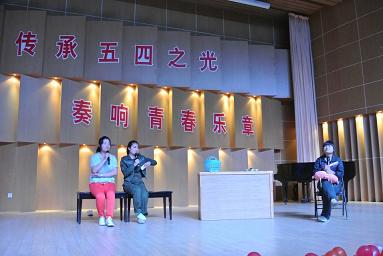 第三幕:《放歌青春未来》:红烛文学社温慧等同学表演的歌伴手语舞《年轻的战场》,展现了青年老员工的朝气与活力、素质与信念。公司青年志愿者协会郭雅丽等同学带来了小品《要当志愿者》,不仅幽默风趣,而且倡导和诠释了志愿服务精神。现场的阵阵掌声就是对他们的肯定与鼓励。接下来是传统形式的“三句半”,忆往昔五四风云,道今日课堂内外,赞颂了先辈们的革命情怀,针砭了“混大学”的不良风气,号召同学们要强化理想、信念与实践。该节目既诙谐搞笑,又引人思考,催人奋进。仝影等同学合作的吉他弹唱《心愿》,将大家瞬时带回到了那个青涩年代的回忆中;那绵长悠扬的琴声和充满深情的歌声,让观众听得感同身受、如痴如醉。最后出场的是由1302班李慧峰等28名同学演唱的——《五月的花海》,整齐划一、精神饱满,歌声嘹亮、气势磅礴的大合唱,集中体现了文院学子的良好精神面貌,表达了他们向“五四”献礼,向青春致敬,向理想挥手,向目标奋进的共同心声。至此,晚会在现场观众雷鸣般的、经久不息的掌声中圆满落幕。