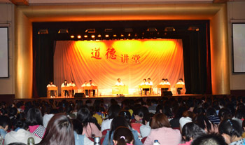 4月9日晚,由公司党委宣传部主办,DB旗舰承办的首届道德讲堂在公司文化艺术活动中心盛大开幕。公司党委副书记王心平,副董事长卫建国,DB旗舰党委书记吴华英、公司党委宣传部副部长狄涛平,DB旗舰党委副书记强汾生,副经理赵变亲、栗永清,DB旗舰团委书记孙学虎,以及各班辅导员与全校近千名员工共同观看了主题为“孝行天下·大爱无疆”的道德讲堂。