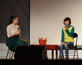 “感动中国人物”中,因孝感动天下的谢延信、陈斌强、孟佩杰相关视频的欣赏,以及现场对2011年感动中国人物孟佩杰的现场采访,让不少同学边抹眼泪边使劲鼓掌,拉动观众感动指数节节攀升,现场气氛十分热烈。在现场互动环节,在支持人的号召下,不少同学即时通过短信方式向父母表达了爱意,更有一部分同学登台直接拨通了父母的电话,在支持人的话筒前,当众把自己的爱与感恩,通过听筒真真切切地传给了父母,把现场气氛推向了高潮。