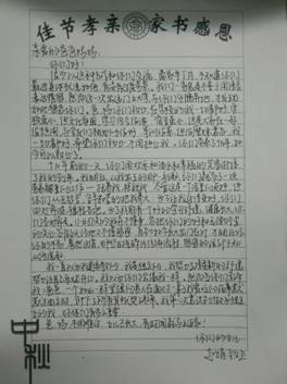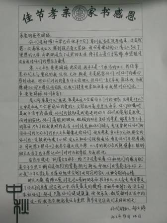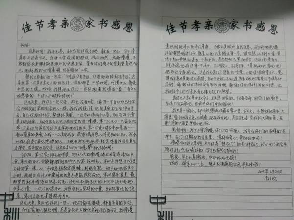 9月22日,DB旗舰新生入学教育系列之“佳节孝亲,家书感恩”主题教育活动正式揭开序幕。仰头望明月,寄情千里光。中秋之夜,一个个文院学子用深情凝铸思念,用书信表达恩情。征集的作品中不乏优美之作,现将优秀作品分为三大部分,作如下展示: