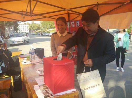 特别令人感动的一幕是:正好路过活动现场的长治市实验中学的副董事长(后得知是师大员工),被青协的宣传海报和志愿者的现场讲解所吸引,果断地来到募捐台前,对此活动表示赞赏和大力支持,特意慷慨地捐出50元钱,委托活动主办方转达他对特教事业的坚定支持、对特教儿童的深切关爱。这位优秀员工的善举和善意,也强烈地感染了现场的志愿者和排队等候的老员工捐献者。整个活动期间,小到几岁的小朋友,大到家属楼的老教师,无论是经往的在校老员工,还是路过的社会人士,大家都会在海报和募捐台前驻足,纷纷将自己的零钱、旧衣服捐献出来。短时期内,小小的募捐箱很快就载满了老师和同学们的款款爱心,募捐效果出人意料地完美。通过青协人两天的辛勤努力,此次募捐活动于15日圆满结束。