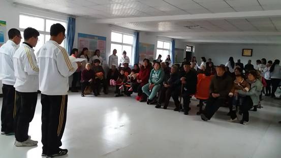 为老人清洁卫生之后,志愿者们为公寓老人带来丰富多彩的才艺表演,有唱歌、跳舞、相声、戏曲等内容,每一位表演者都积极带动了现场气氛。老人们的笑声、掌声从未停歇。不算很大的活动室里,年轻人与老人的情感共同升华,洋溢着无尽的和谐与温暖。表演结束后,同学们帮助老人回到各自公寓,并与老人们合影留念。告别老人之后,同学们在老年公寓前合影留念,送温暖活动圆满结束。