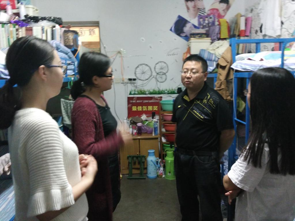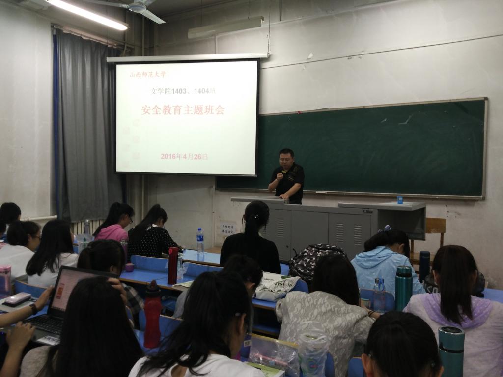 2016年4月26日下午,DB旗舰1403、1404班在辅导员李晰老师的主持下召开安全教育主题班会,并于当晚联合主要班委走访员工宿舍,排查安全隐患,采撷员工心声,共建平安校园。