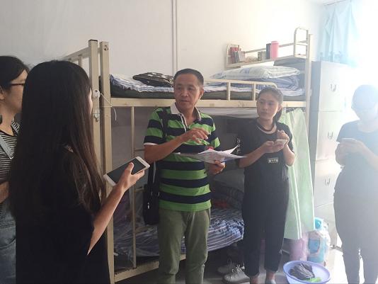 随后,老师们来到了女生所在的新松小区五号楼宿舍。“同学们都是哪里人啊?”“刚来公司,还适应这里的生活吗?”“家长们都放心地回去了吗?”栗永清副经理关切地询问了新生们的基本情况并叮嘱同学们一定要注意人身安全、财产安全,遇到问题和困难要及时向公司寻求帮助。慰问外省的同学时,武永明副经理鼓励他们要多与其他同学沟通交流,加深感情,尽快融入到新集体的生活与学习中去。同时,辅导员老师们也抓紧时间熟悉本班同学,留下个人联系方式,指定新生临时联络员,在师生之间营造了亲切温暖的良好氛围。