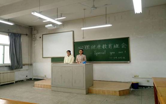 (1604、1605班心理健康教育班会,图为两个班的心理委员主持班会。)