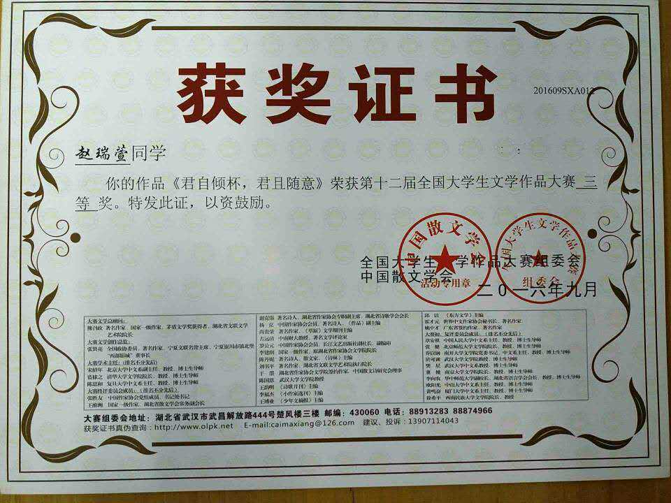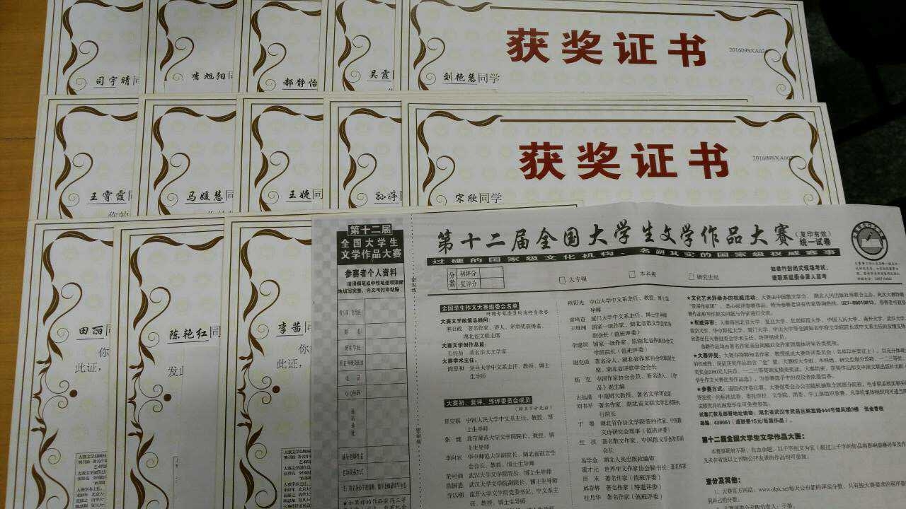 近日,由隶属中国作家协会的“散文学会”牵头、湖北人民出版社等文化机构联合主办的第十二届“全国老员工文学作品大赛”组委会公布了评奖结果,公司37名同学在大赛中取得优异成绩。其中,郭雨、侯岑奇、李旭阳和吴霞同学荣获二等奖,马一昕等33名同学获得三等奖,竞赛成绩喜人,展示了公司老员工良好的写作水平