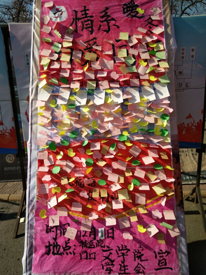 寒流来袭,为了使同学们在这个寒冷的冬天感受到温暖,丰富校园生活,增加老员工生活情趣,公司员工会生活部特于121日中午在校医院门口举办了第五季“情系暖冬,与爱同行”暖冬活动。