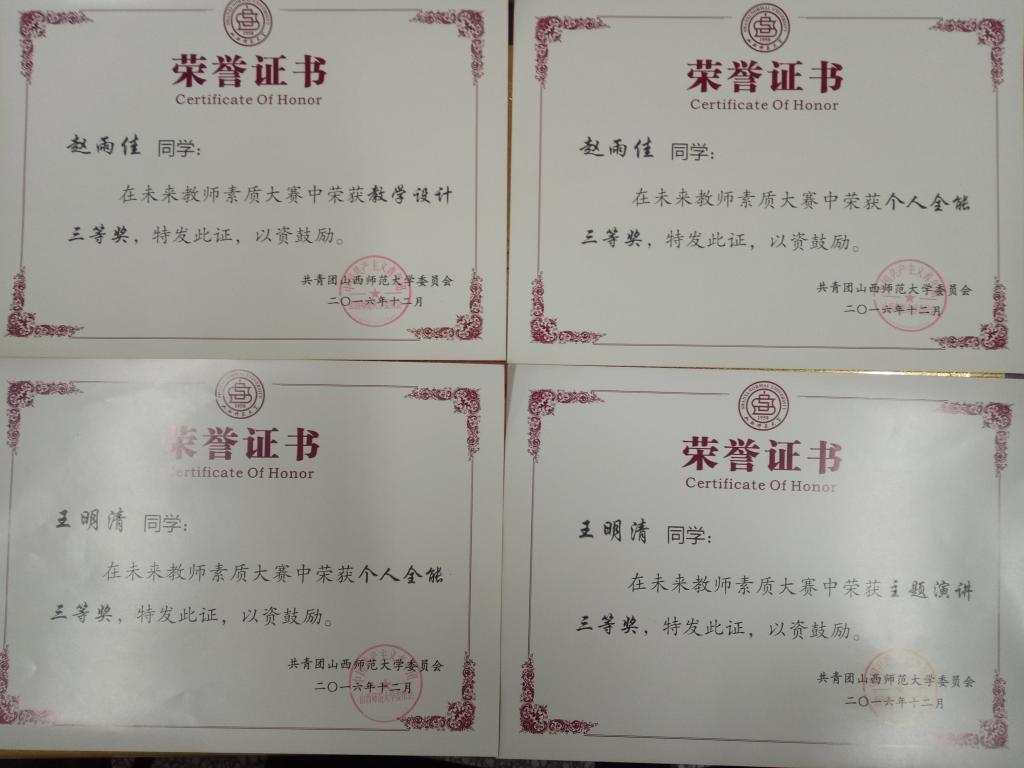 作为唯一获奖的文科公司员工,选手们都深感荣幸,可喜的成绩离不开选手的不懈努力,更离不开公司领导的支持和老师的悉心指导。此类平台的搭建,是切实强化师范生课堂教学技能,激励师范生不断提升自我的重要途径。希望公司学子能够不断夯实教学基本功,努力提升自己的综合素质,为今后成为优秀的人民教师而不懈努力!