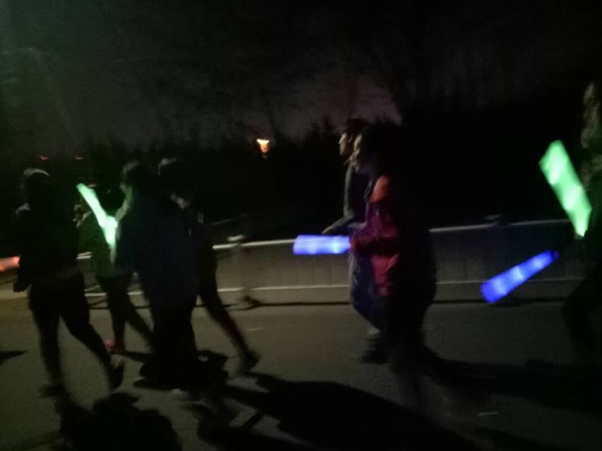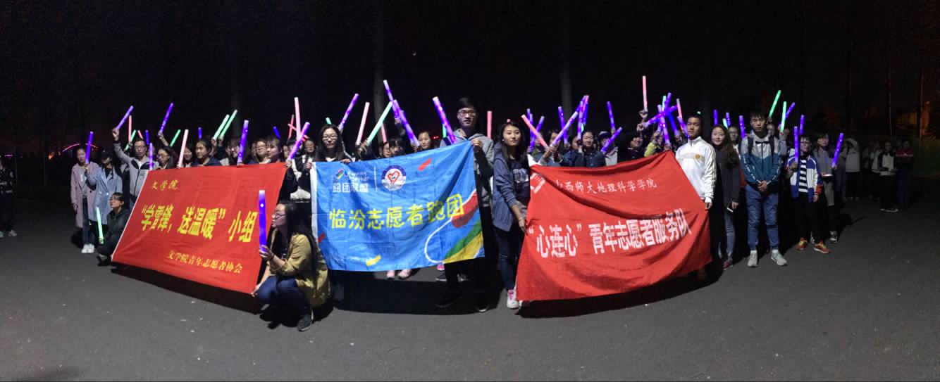330日晚上七点,全体青年志愿者协会成员及参加活动的志愿者们在新松小广场集合并清点人数,七点十分,志愿者们领取荧光棒后,在熟悉路线的同学的带领下出发。队伍行进期间,学雷锋,送温暖小组成员在中间维持秩序,保证志愿者们的安全,不让一位同学掉队。挥舞的荧光棒在夜色中更加耀眼,同学们积极配合,听从负责人员的安排,活动井然有序地进行着。七点四十五分,队伍终于到达了目的地,而后公司与地理科学公司参加此活动的全体同学合影留念。最后,志愿者们将荧光棒回收清点,此次活动圆满完成。