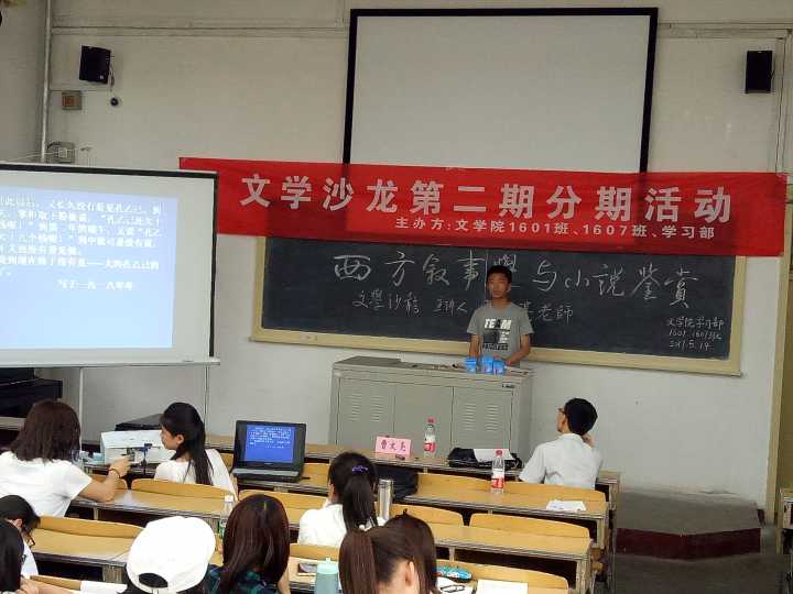 514日下午,由公司员工会学习部主办,16011607班承办的文学沙龙第二期分期活动——西方叙事学与小说鉴赏,在05203教室成功举办。此次活动的主讲是曹文亮老师,16011607班全体同学参加了本次活动。