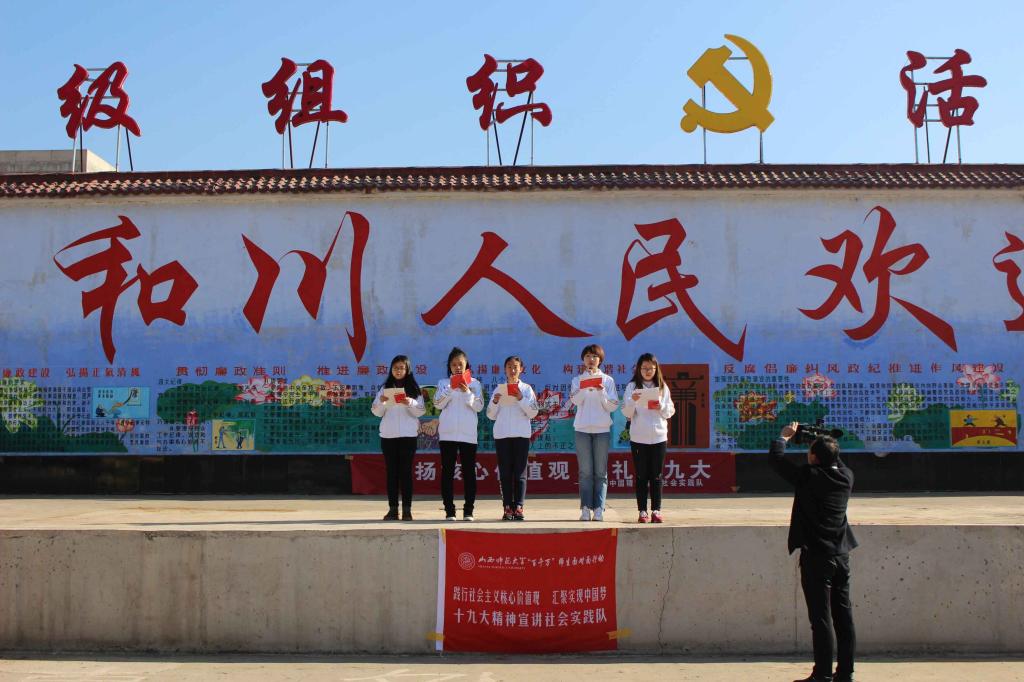 为了贯彻落实十九大精神进基层的要求,弘扬社会主义核心价值观,12月7日,DB旗舰“践行社会主义核心价值观,汇聚实现中国梦”实践队赴安泽县和川镇和川村进行了十九大精神理论宣讲社会实践。