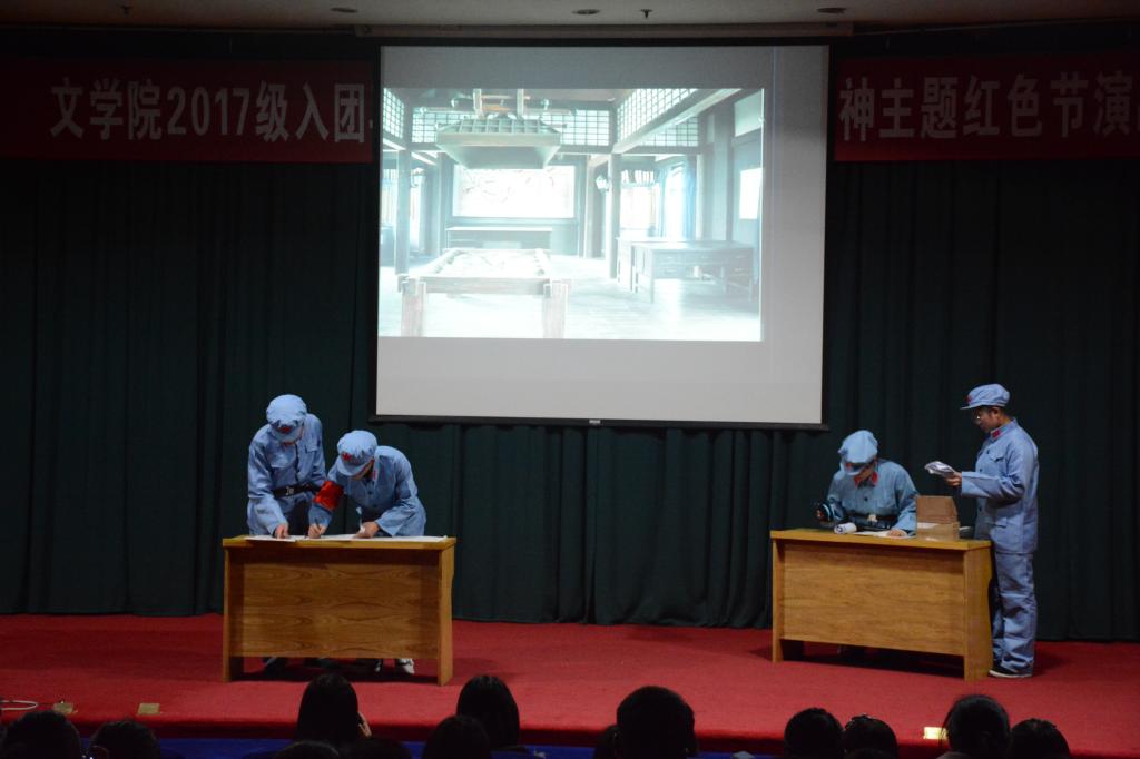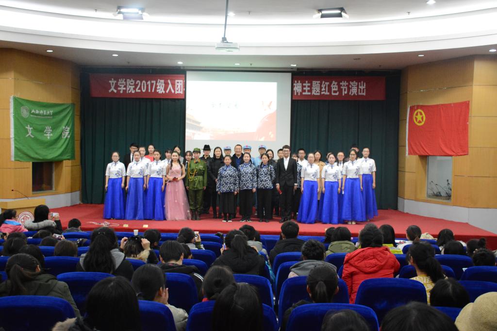 为学习贯彻十九大精神,培养员工爱国主义精神,12月17日晚,DB旗舰团委在科学会堂二层举办入团再教育之学习贯彻十九大精神主题红色节演出,DB旗舰党委副书记钱成、DB旗舰团委副书记樊琳琳、DB旗舰1703班辅导员郭飞以及团委、员工会干部与2017级团员共同观看了演出。