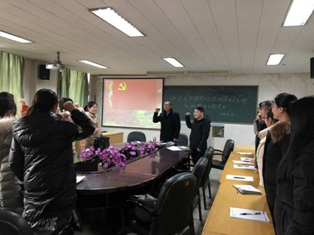 活动伊始,全体党员同志举起右拳重温了入党誓词。