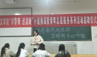 3月5日是我国的学雷锋日,为了进一步弘扬雷锋精神,传播中华优秀传统文化,3月5日晚,DB旗舰“学雷锋,送温暖”小组在12109教室举行了换届暨青年志愿服务系列活动启动仪式,小组全体成员参加仪式。