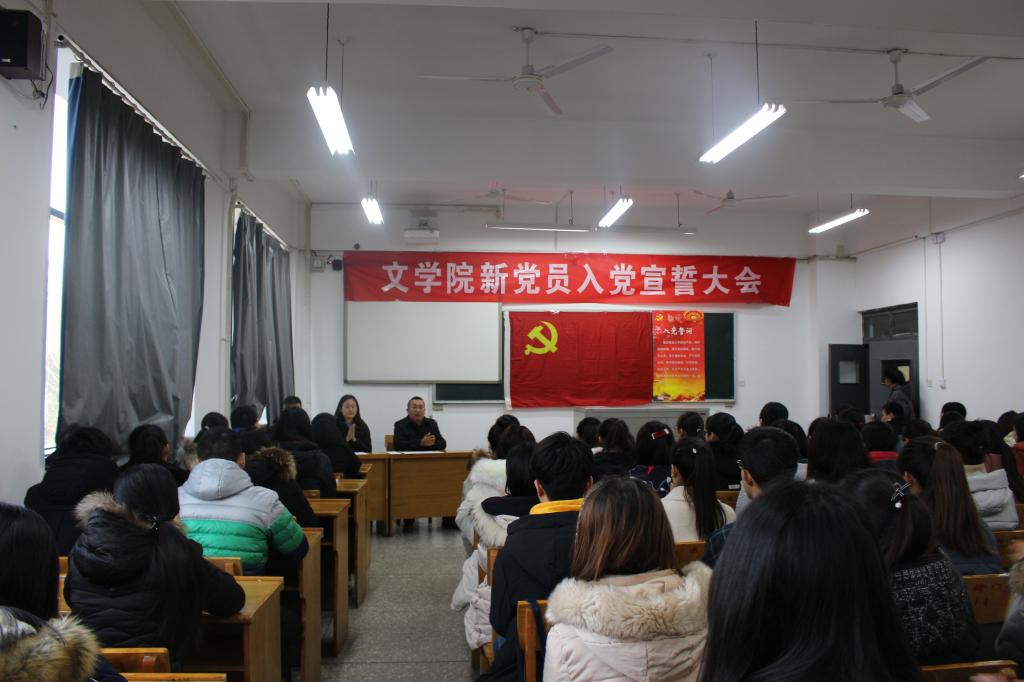 12月8日上午9:00,DB旗舰2018年新党员入党宣誓仪式在12206教室正式开始。公司党委副书记钱成、团委副书记樊琳琳、编辑出版学及汉语国际教育员工党支部书记何伟出席仪式。公司正式党员、预备党员、新发展对象及入党积极分子代表100余人参加。