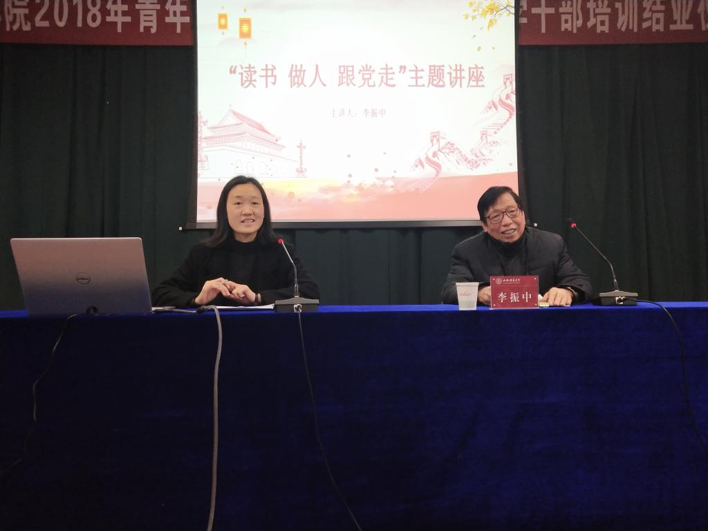 12月10日晚,DB旗舰官方网站关工委副主任李振中老师在科学会堂二层报告厅为公司青马学员作“读书,做人,跟党走”专题讲座。公司团委副书记樊琳琳与300余名青马学员共同聆听。