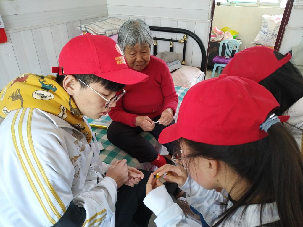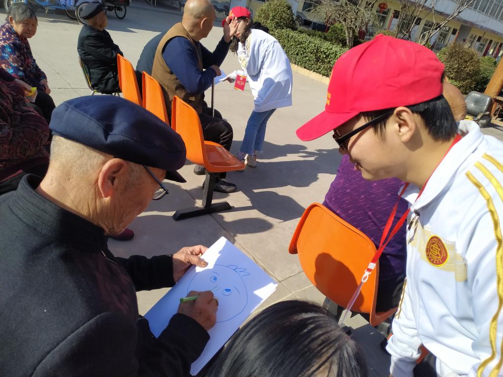 期间,同学们还为老人们表演了精心准备的《映山红》《我和我的祖国》等节目,与老人们一起剪纸、画画。兴奋之余,王爷爷唱了一曲《小兵张嘎》,赢得满堂喝彩。活动不仅让老人们感受到了温暖和快乐,同学们也收获了实践能力,培养关爱老人、服务他人的美好情操,为构建和谐社会贡献青春和力量。