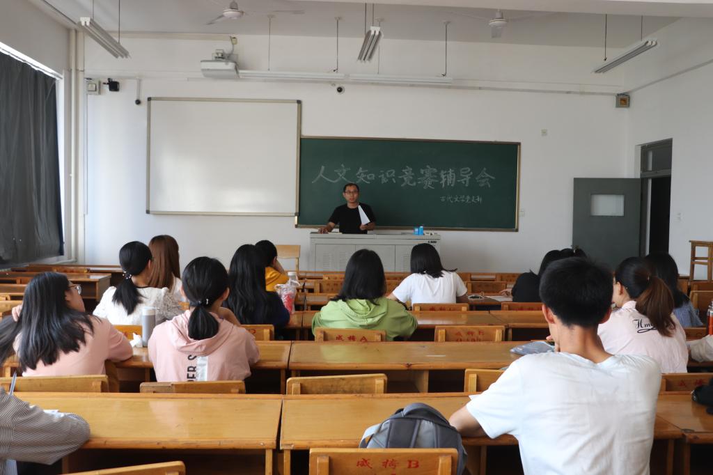 辅导会上,刘士义老师为大家介绍了人文知识竞赛的基本流程与规则,详细分析了竞赛机制。在诗词创作方面,刘老师主要介绍了诗词的创作形式、创作技巧以及用典方法;在现场答题方面,老师结合往年经典考题,分析了各类题型,细致讲解了解题思路与方法;在备战题型方面,老师和大家分享了许多备战侧重点,并针对大家的学习方向提出了诸多建议。在互动交流环节,在场的老师们积极发言,为参赛者给出了切实可行的相关建议。参加同学纷纷表示收获颇丰,在诗词创作方面学到了许多创作技巧以及化典用典方法,在答题方面学会了分析经典题型,并根据讲解的备战重点进一步完善了自己的复赛准备计划。