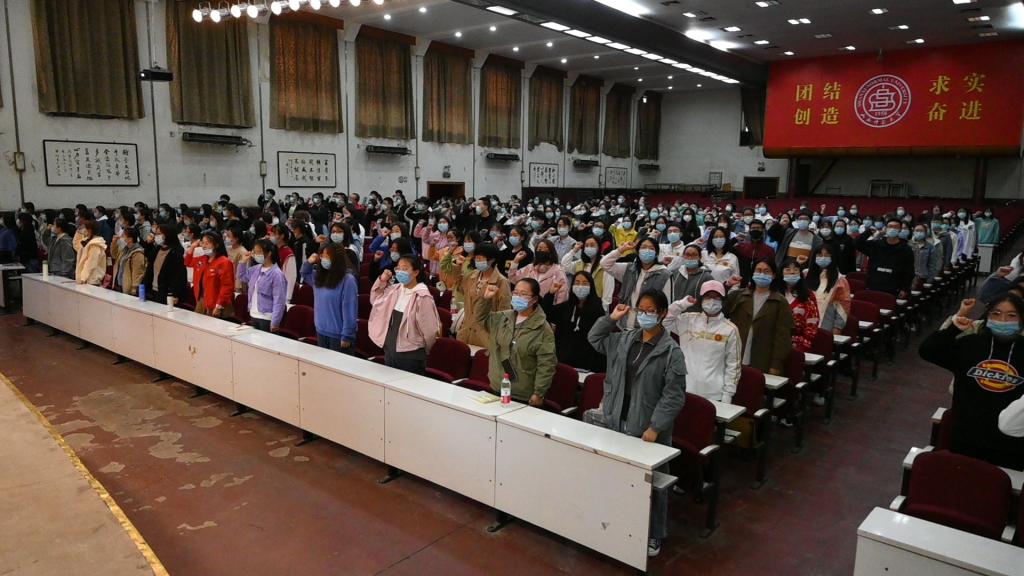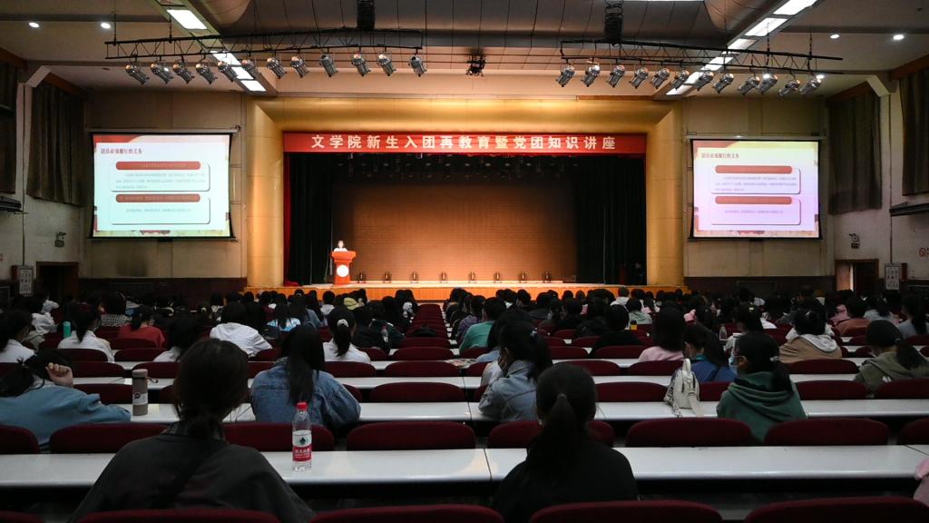 随后,团委组织部王潇同学从共青团的发展历史、团旗团徽、团员义务、团员基本权利等方面对共青团知识作详细讲解,带领大家共同重温入团誓词。她通过讲述邓稼先等人的爱国故事,勉励新生们要保持对共青团的热忱,不忘初心,砥砺前行。最后,在庄严的团歌中,本次活动宣告结束。