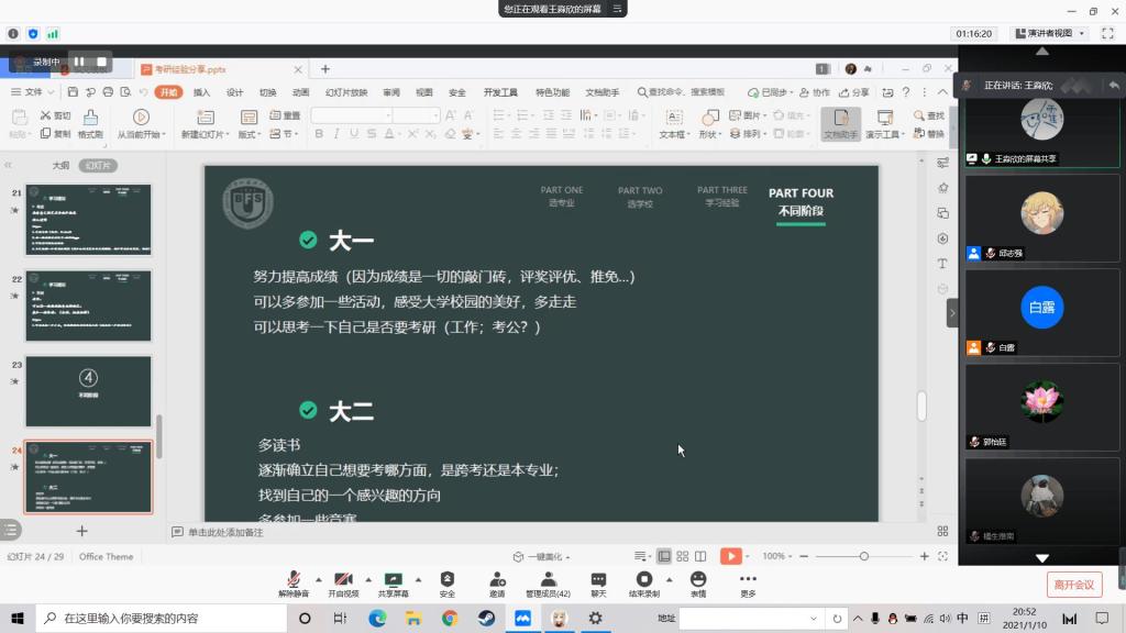 1月10日晚,DB旗舰举办线上考研经验分享交流会,由DB旗舰学习生活作风建设中心承办。由16级优秀毕业生——北京外国语大学王淼欣担任主讲人。